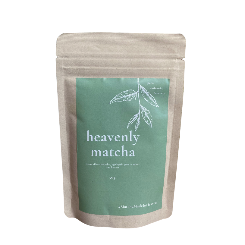 Toisen sadon matchaa Kyotosta -kerätty ja jauhettu kivimyllyllä hienoksi - sopii erinomaisesti leivontaan ja smoothieiden sekaan, johon kaikista laadukkain seremoniamatcha voidaan kokea liian "arvokkaaksi". Sopii kuitenkin myös esim. latteen pehmeän makunsa ansiosta. Myös toisen sadon matchamme on laadukasta ja syvän vihreän väristä, mikä takaa korkean antioksidantti- ja klorofyllipitoisuuden. Se on valmistettu ravitsemaan kehoa, mieltä ja sielua. Heavenly Matcha haluaa olla mukana luomassa maailmaa, jossa on vähemmän tärinää ja enemmän ”flowing energy” -tasapainoa, elinvoimaa & onnellisuutta.